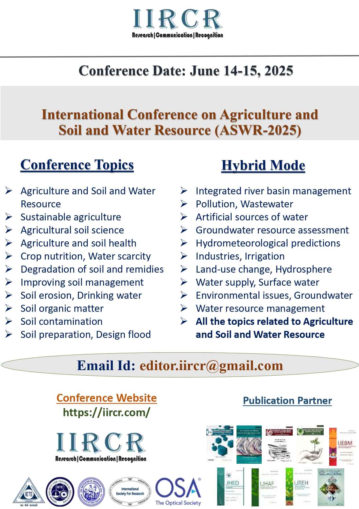Contact E-mail id for any Query and Abstract Submission: editor.iircr@gmail.com