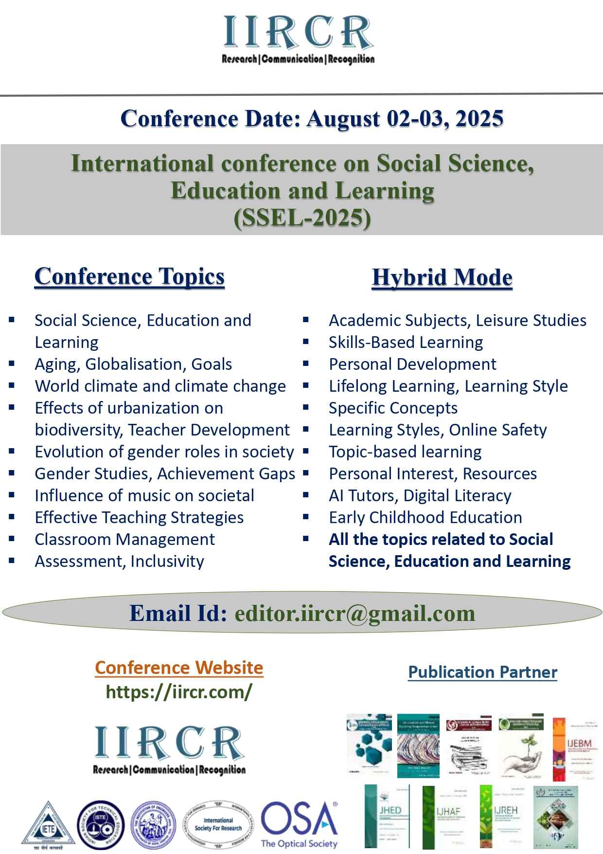 March-2025 Conferences || editor.iircr@gmail.com || CONTACT US  ||iircr whatsapp
